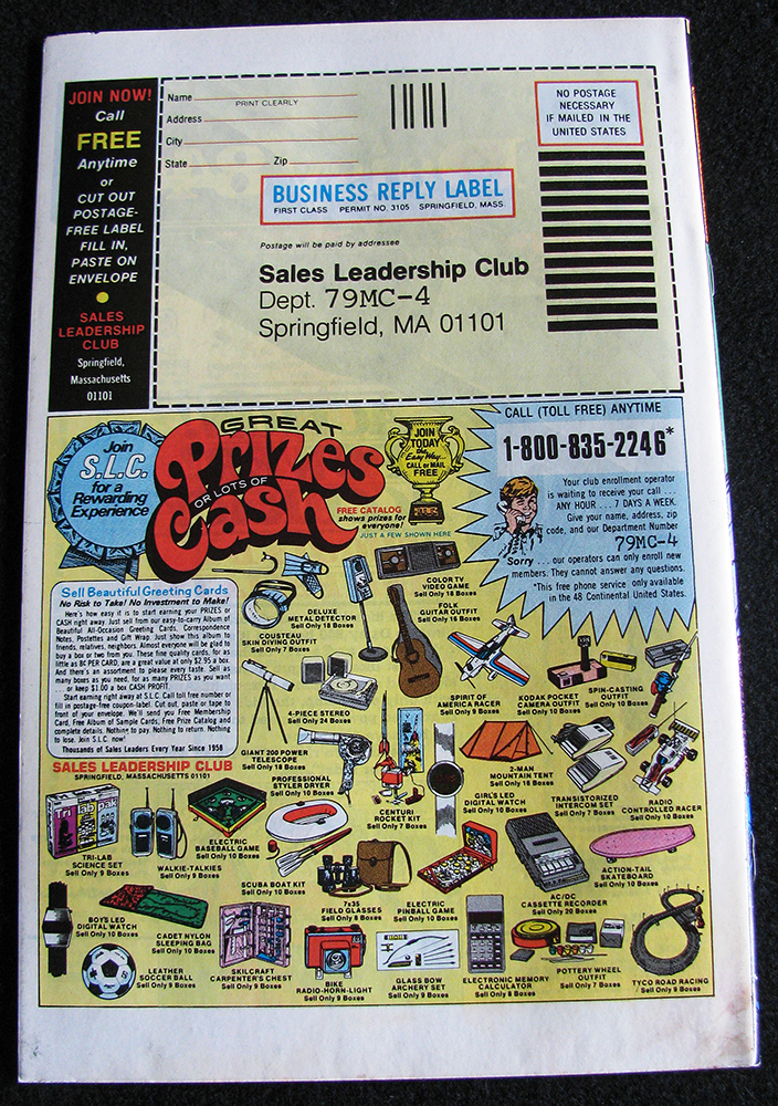 Beautiful looking book with some minor water spots. Cover is bright and glossy. Spine shows very few signs of wear. Original staples are clean and tight throughout. Corners are square. There are small light water stains at the bottom spine corner on the front and back covers. Pages are off-white to tan with nice color.
