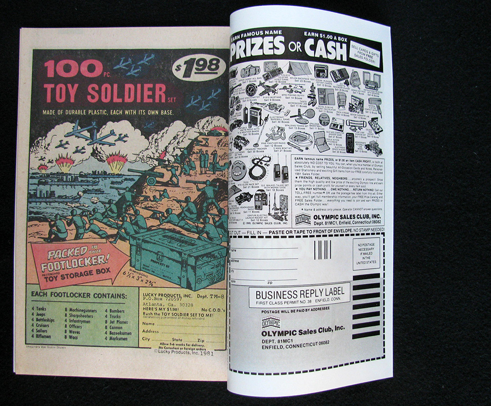 Cover colors are bright with a high level glossiness. Spine shows a few signs of light wear. Original staples are clean and tight throughout. Corners are square and sharp. The upper spine corner of the back cover has a barely visible pencil mark. Pages are off-white with nice color.