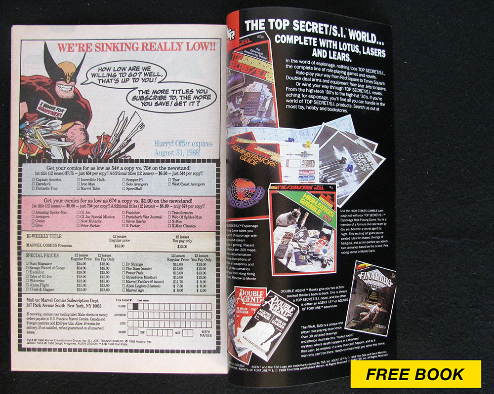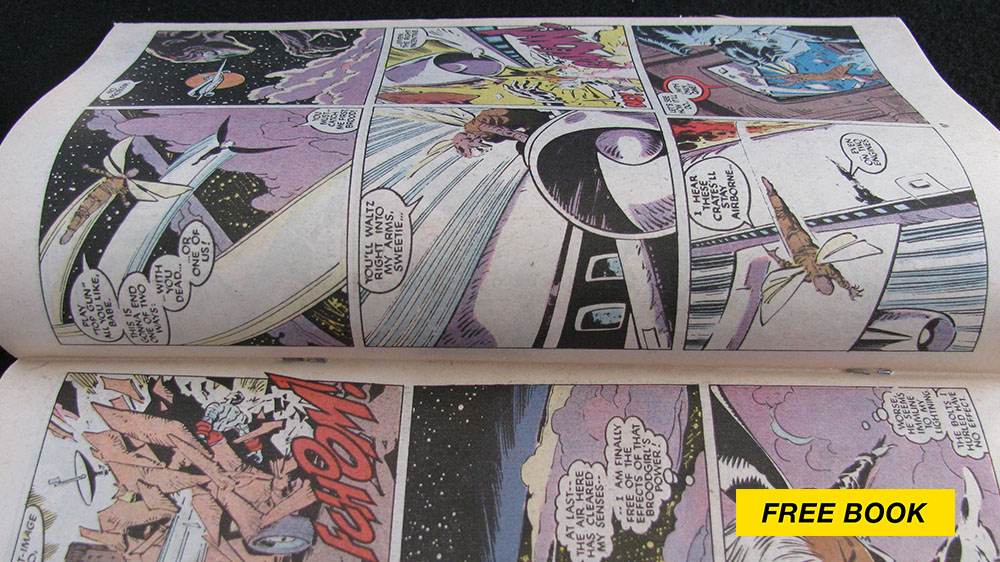 Covers are bright and glossy. Front cover has a large rip on the outside edge. Spine shows no sign of wear. Original staples are clean and tight throughout. Corners are square and sharp. Pages are white to off-white with nice color.